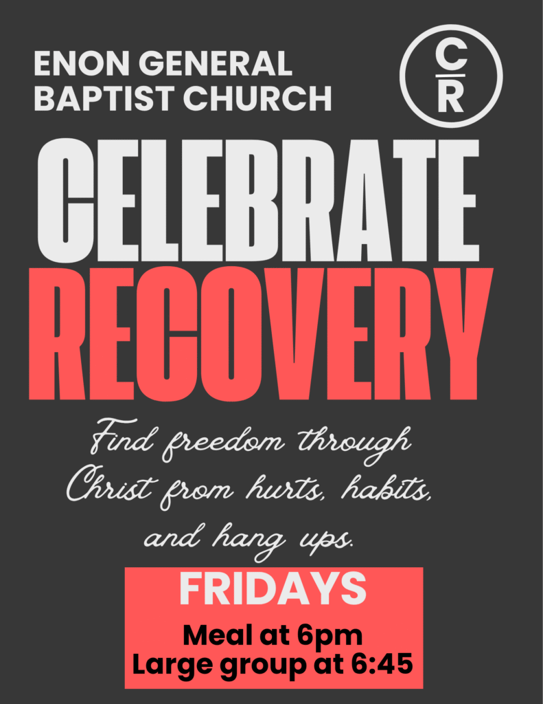 Join us every Friday evening at 6pm for dinner, fellowship, and growth through life’s hurts habits and hang-ups with lessons, testimonies, small groups and worship.